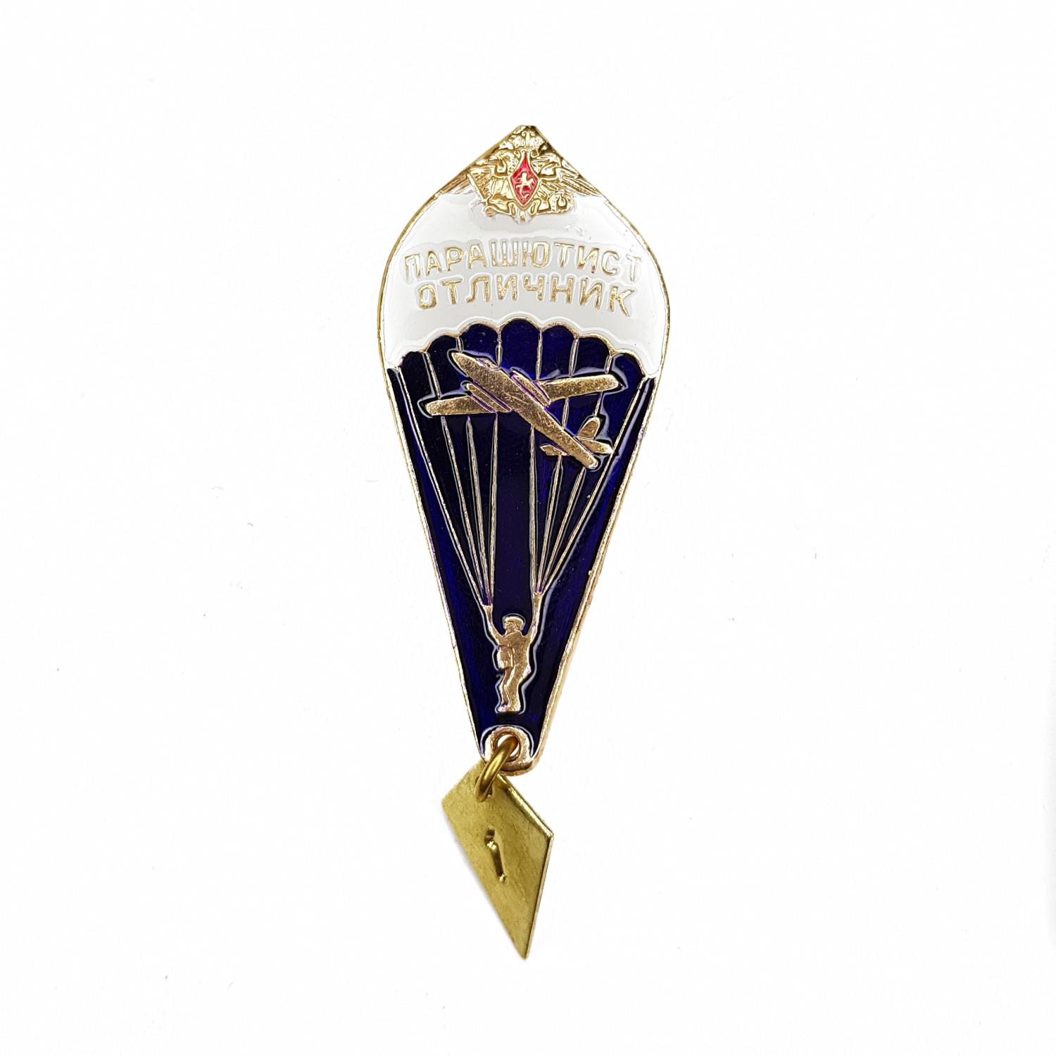 Значок Парашютист-отличник (с самолетом и орлом) РА, белый, синий, металл - интернет магазин Полигон