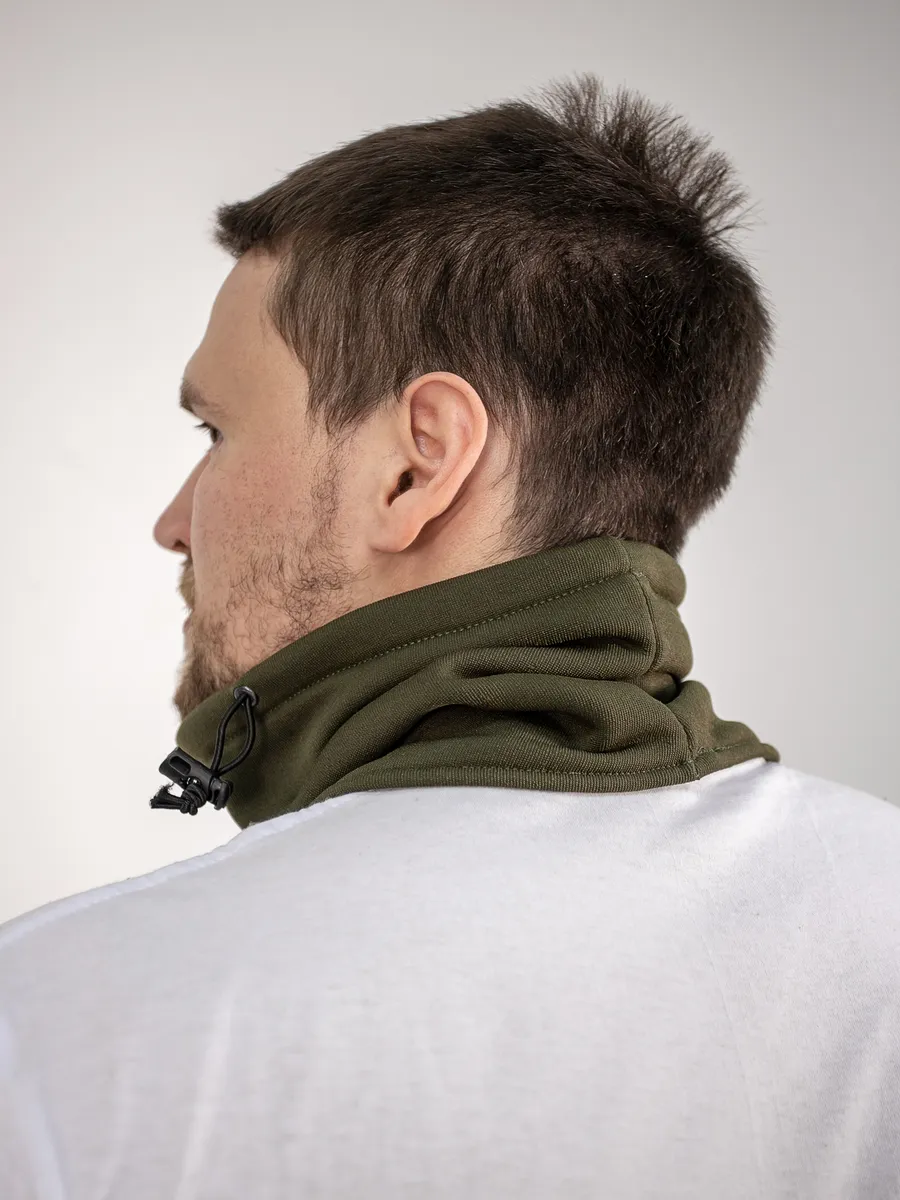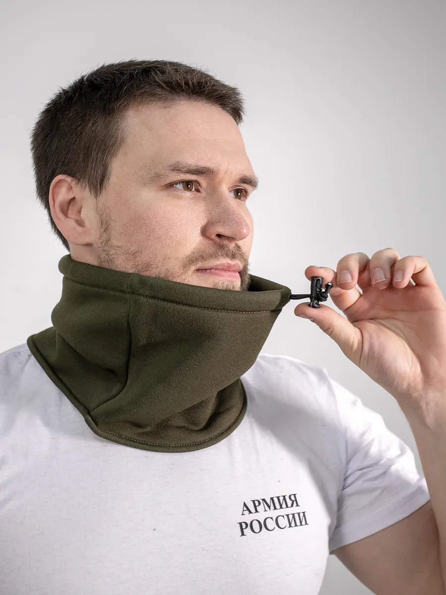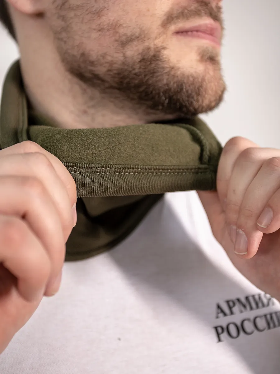 Всесезонный комплект базового обмундирования (ВКБО И ВКПО) представлен в расцветке олива. Входят в комплект формы Армии России. Шарф-нагрудник послужит хорошим помощником в холодное время года, как шарф-труба и шапка. Шарф представляет собой трубу с утяжкой. Одевается через голову. Флис. Верх шарфа регулируется эластичным шнуром и фиксатором. Защищает от холода шею и нижнюю часть лица. Может трансформироваться в шапку путем утяжки эластичным шнуром верхней части шарфа. Размер хомута шарфа 35х27 см.