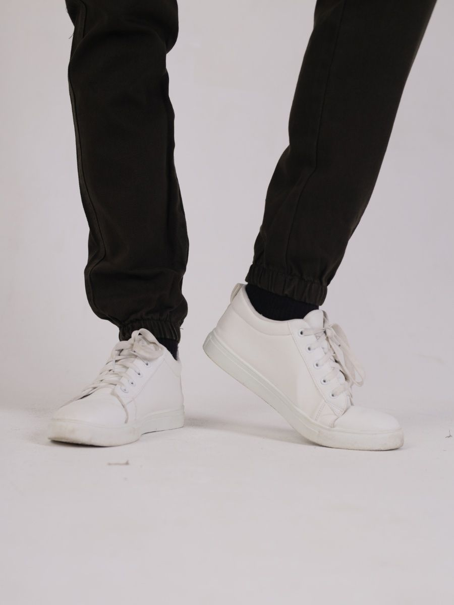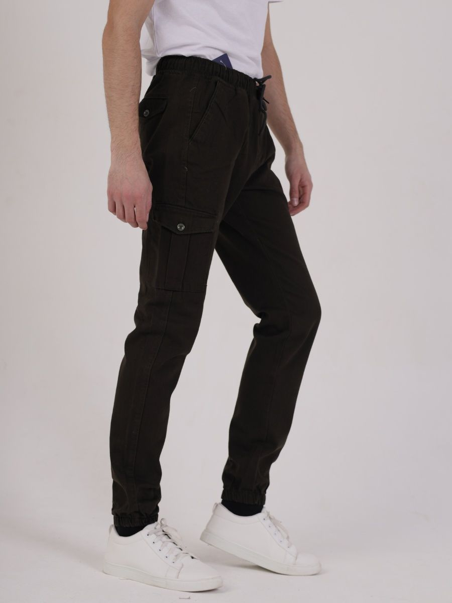Брюки мужские представлены в цвете хаки (олива). Джоггеры удачная модель объединившая спортивный стиль с городским. Штаны стильно смотрятся и хорошо сочетаются с футболками, куртками, рубашками. Отлично вписываются у каждого мужчины, женщины, подростка в гардеробе. Материал джоггеров состоит из 97% хлопка, 3% полиэстер. Для различных аксессуаров предусмотрено 6 карманов: 2 прорезных, 2 накладных на бедрах, 2 накладных задних кармана. Все карманы глубокие и функциональные и ими удобно пользоваться. Отличительная черта этих спортивных штанов является резинка на талии, а также манжеты на щиколотках в виде резинки. Благодаря резинкам при необходимости брюки можно легко поднять. Брюки удобно носить с высокими берцами, кроссовками, мокасинами. Коллекцию карго джогерров весна-лето можно увидеть не только на стадионах и в спорт залах, но и на улицах и даже в офисах.