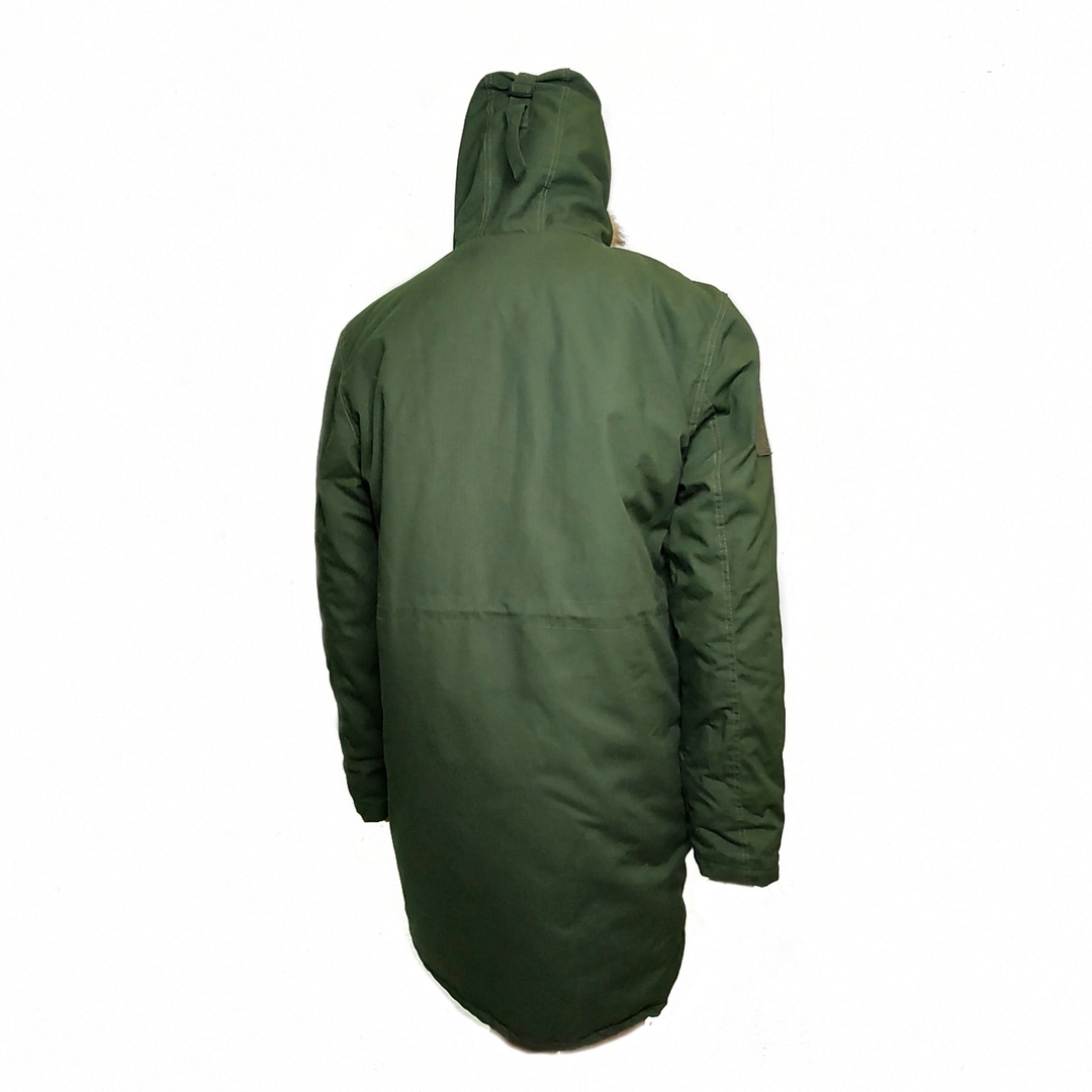 -Центральная застежка на двух замковой молнии, закрыта ветрозащитной планкой с потайными липучками;
