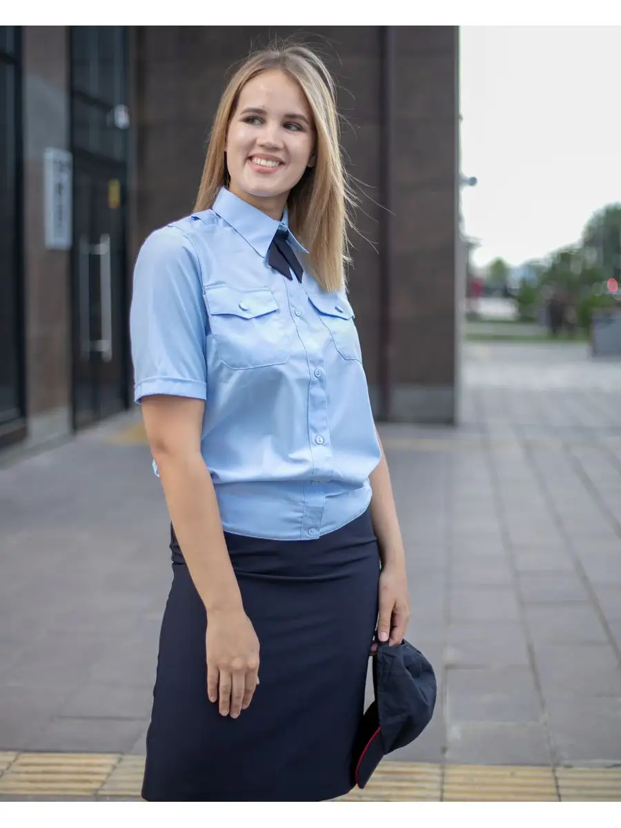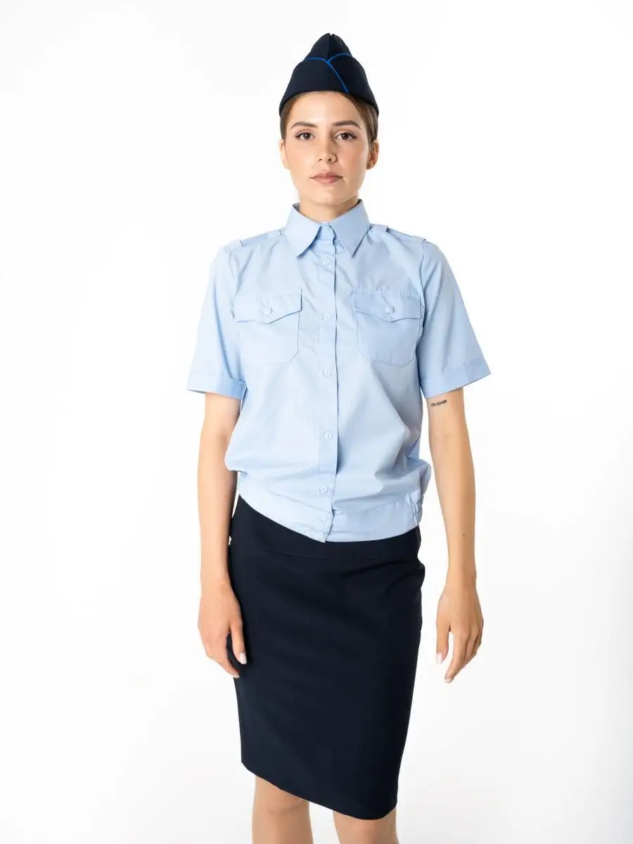 Рубашка Полиция, цвет бледно-голубой, женская, короткий рукав - интернет магазин Полигон