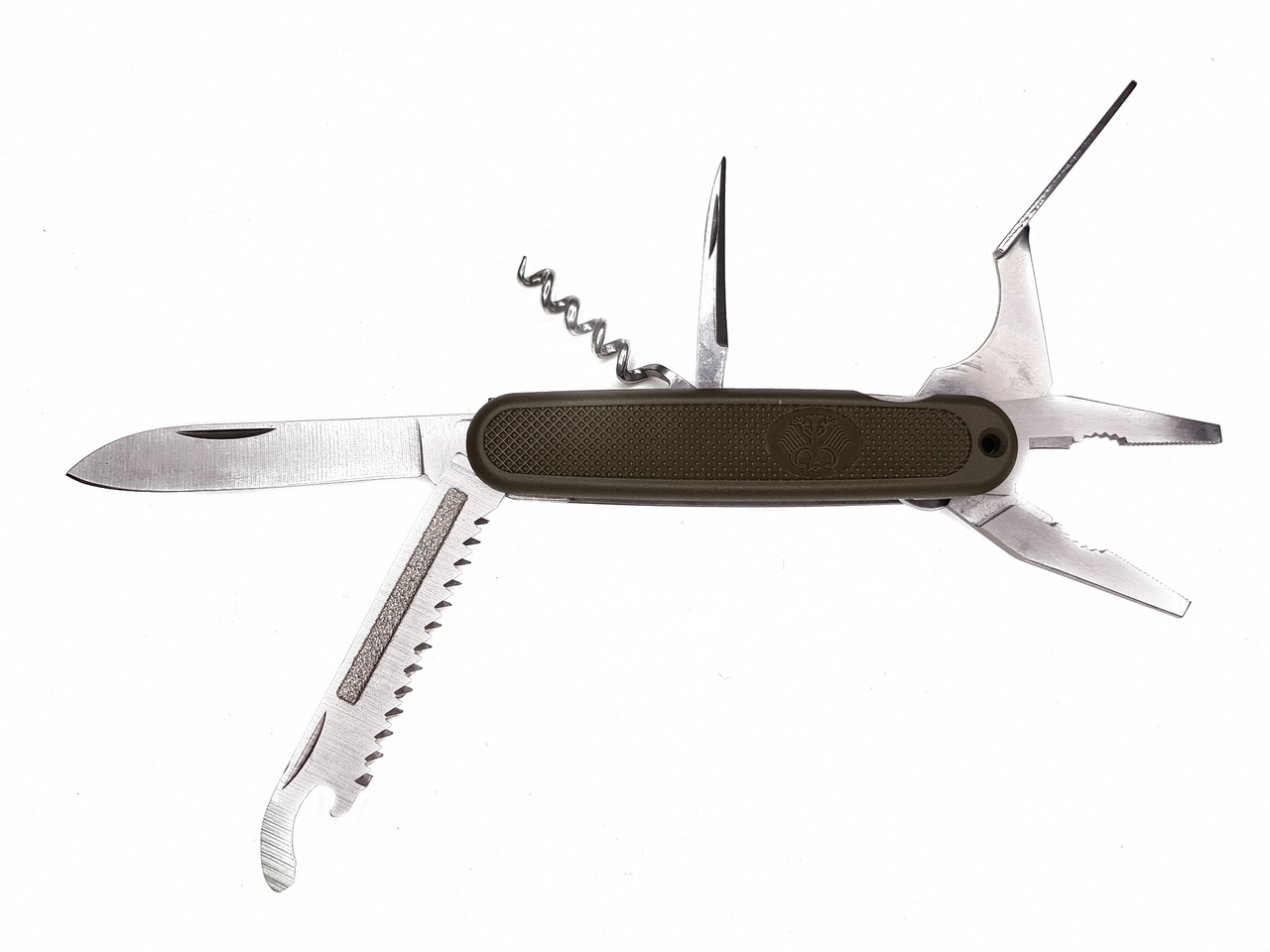 Многофункциональный нож Бундесвера Mil-Tec выполнен из нержавеющей стали. Удобный, практичнй и надежный. В комплекте: нож, пила, шило, штопор, плоскогубцы с возможностью перекусить проволоку, открывашка для бутылок и консервная открывашка.