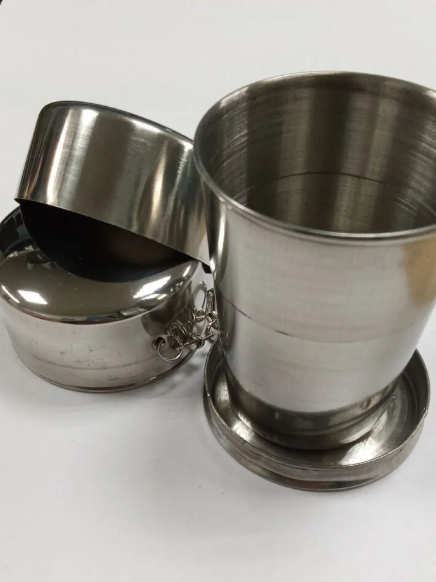 Складной стакан удобно брать с собой в сложенном виде, он занимает мало места и его можно положить в карман или рюкзак, а это очень важно в походах. Стакан из детства вернет вас в беззаботное время СССР. Компактный раскладной стакан, складывающийся и раскладывающийся одним движением руки, имеет карабин, который можно легко зацепить на хлястик ваших брюк или рюкзак. Рюмка туристическая из нержавеющей стали закрывается крышкой, что позволяет ей быть всегда компактной, легко помещающейся в карман.
