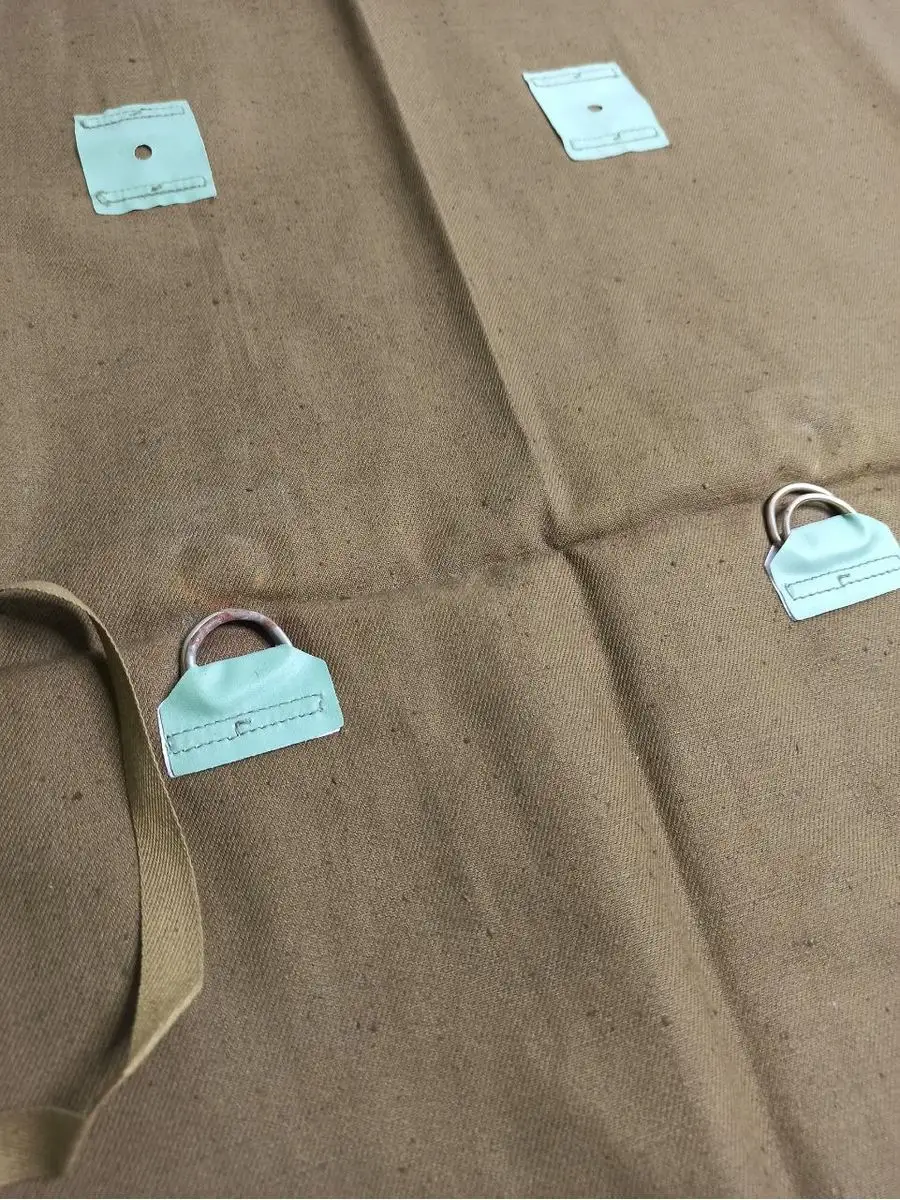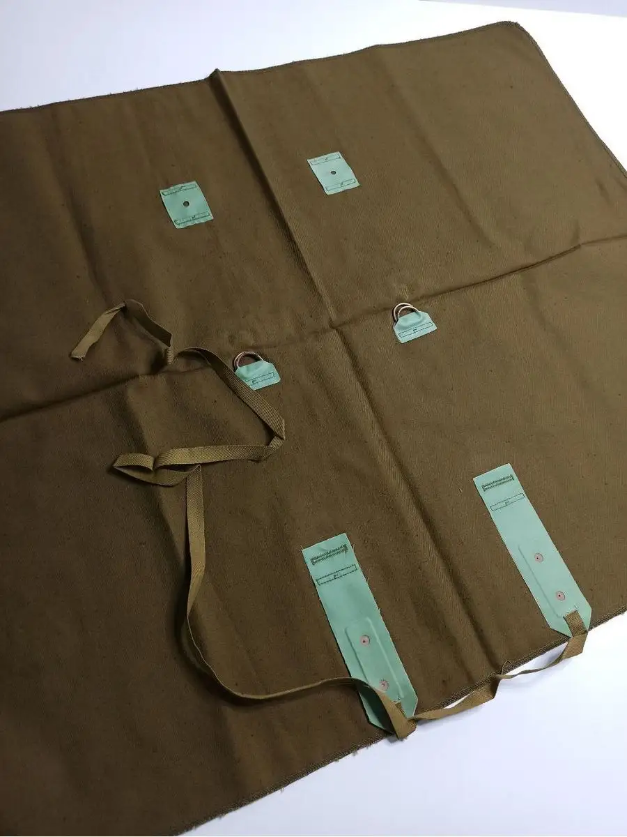 Чехол для ОЗК, цвет хаки. Чехол для защитного плаща ОП-1М. Армейский уставной чехол для Общевойскового Защитного Комплекта предназначен для крепления к элементам экипировки или к спине военнослужащего для быстрого извлечения, развертывания плаща в боевое положении в виде накидки. Сумка-чехол изготовлен из палаточной ткани. Чехол в полном комплекте со всеми шлевками и фиксирующими лентами. На чехле расположены два хлястика и два шпенька (в держателях) для застегивания чехла, две прорези на хлястиках для продевания держателей плаща, две пары рамок стальных (полукольца) для крепления чехла с плащом на спине военнослужащего, солдата. В разложенном виде 70х80 см.