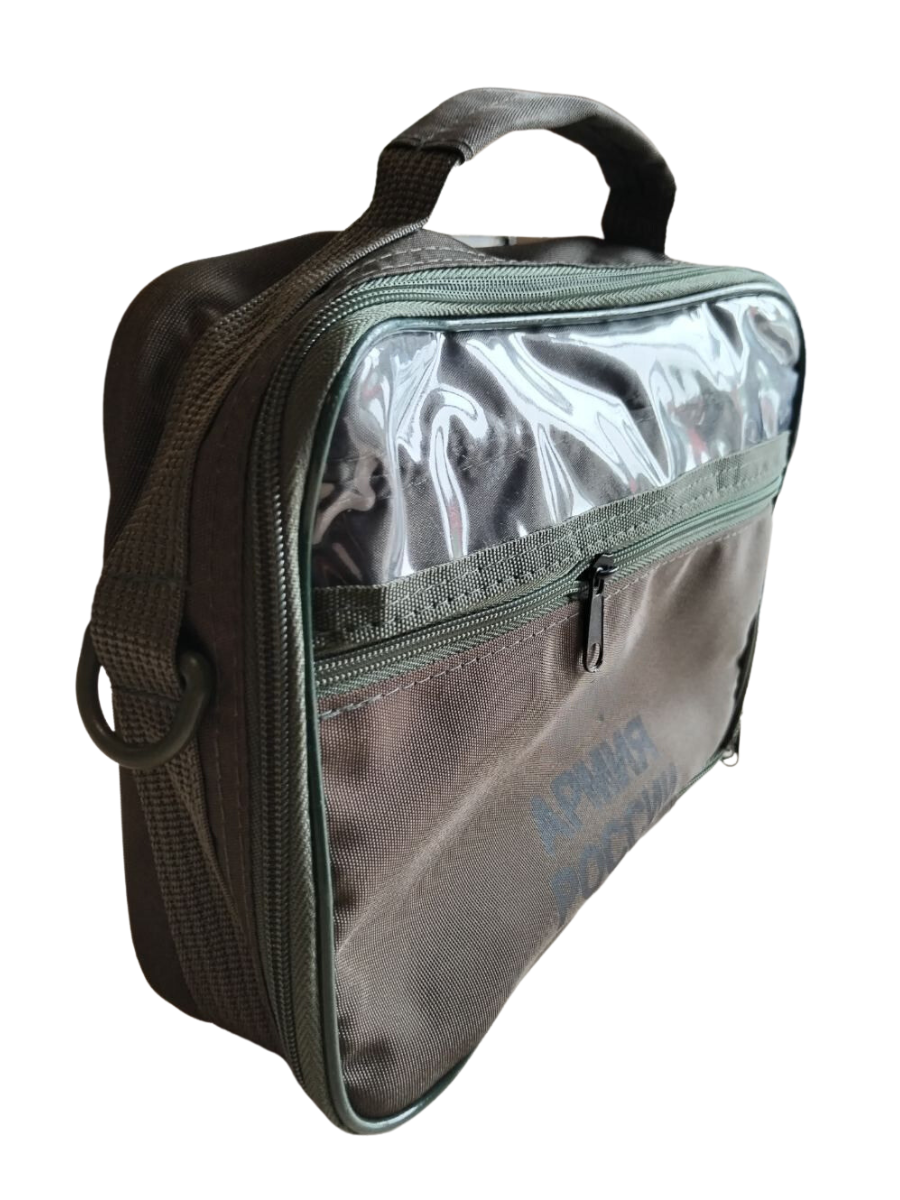 Несессер Армия России выдаётся призывникам для укладки вещей личной гигиены. Имеет много различных карманов и отсеков, полезный аксессуар для туриста, дачника, охотника и рыбака. Необходим в командировках во время профессиональной деятельности. Гигиенические приспособления солдат обязан иметь при себе во время смотра, полевого выхода и боевой тревоги. Сумка Армия России изготовлена из качественного материала, который обладает водоотталкивающими свойствами. Оснащена верхней ручкой с текстильным подручником для переноски и с двумя D-кольцами по бокам. Спереди имеется карман на молнии не глубокий. Нессер армейский имеет сзади отделение на молнии, в котором спрятан язычок с крючком, на который при использовании можно повесить. Основное большое отделение закрывается на молнию, раскладывается на 3 секции, также в нем имеется съемный модуль на липучке с прошитой лентой и биркой. На эластичный шнурок можно повесить полотенце или белье. Внутренние сетчатые карманы быстро сохнут. Размеры сумки косметички мужской 7х20х25см. Данную военную сумку косметичку используют как солдаты, так и офицеры. Занимает не много места, где аккуратно все лежит.
