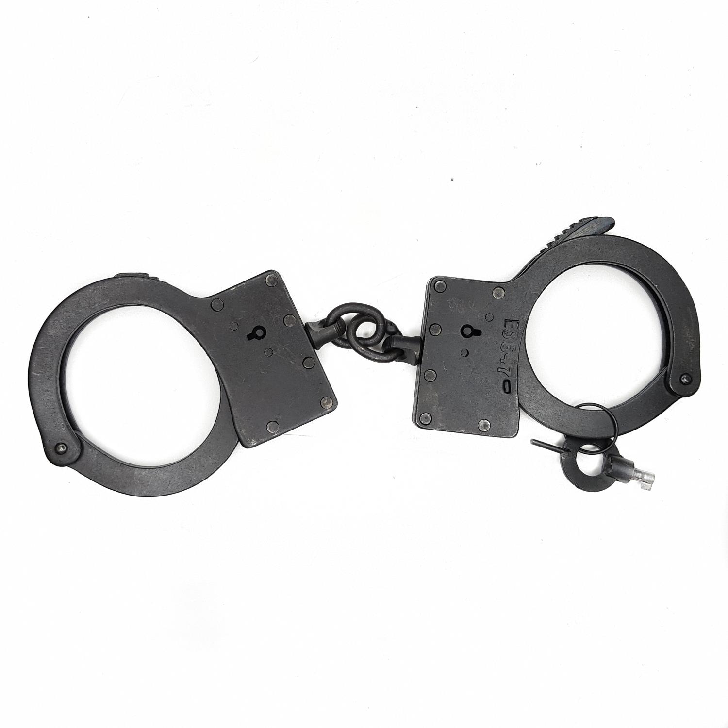 Наручники оксидированные (вороненые), конвойные, на жестком шарнирном соединении, с фиксацией в заданном положении. Комплектуются одним ключом. Вес наручников: 350гр.